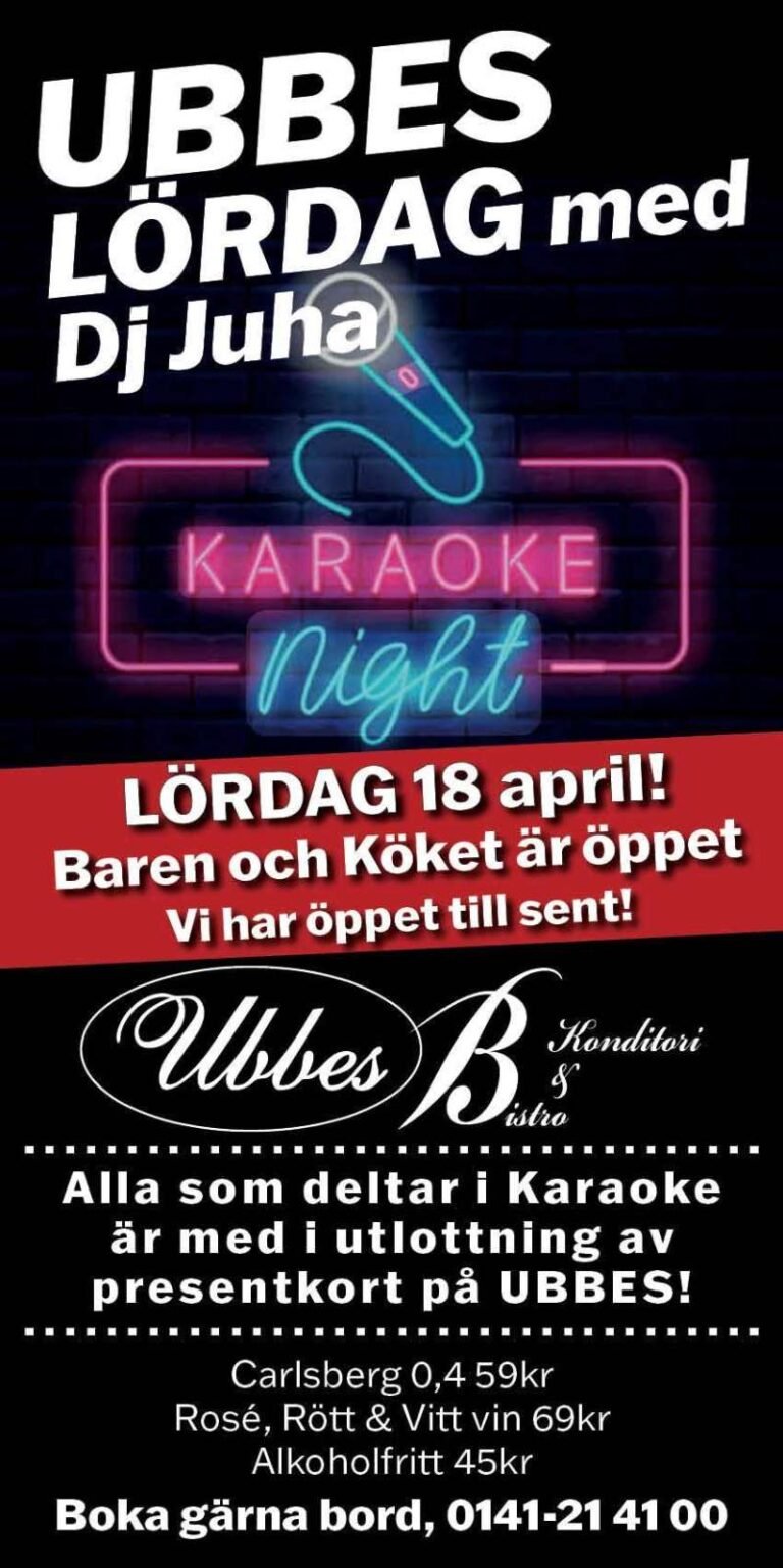 Karaoke med Annelie & Axel, en given succé!Start kl 22.00Kom och sjung, eller bara lyssna på alla stjärnor!Fri entré hela...