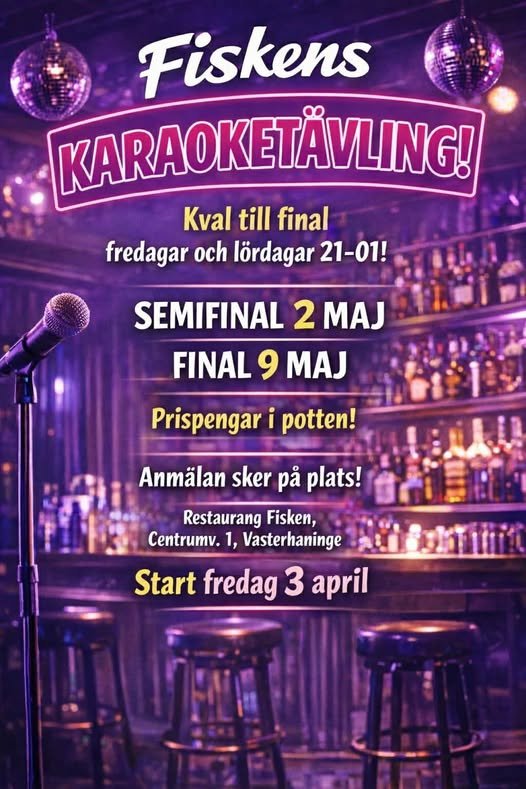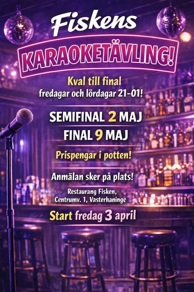 � Restaurang Fisken | Fredag 3 april kl 21:00Är du redo att visa upp din röst och tävla om prispengar?...
