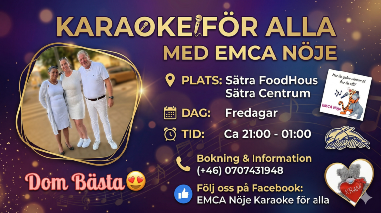 � Sätra FoodHouse | Lördag 2026-03-21 kl ca 21-01Gör er redo för en oförglömlig kväll med sång och glädje! EMCA...